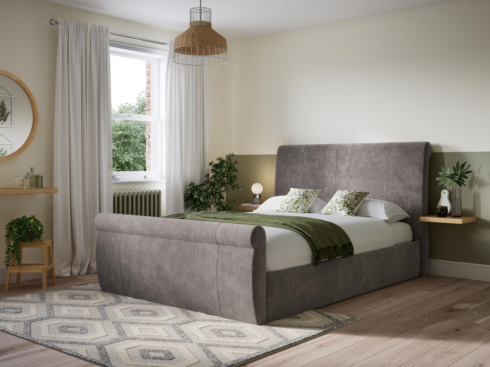 The Fernsbury is also available in two velvet finishes. If you’re searching for the perfect beige or grey velvet ottoman bed, this stylish bed frame – featuring that stunning scroll headboard – is one to consider.