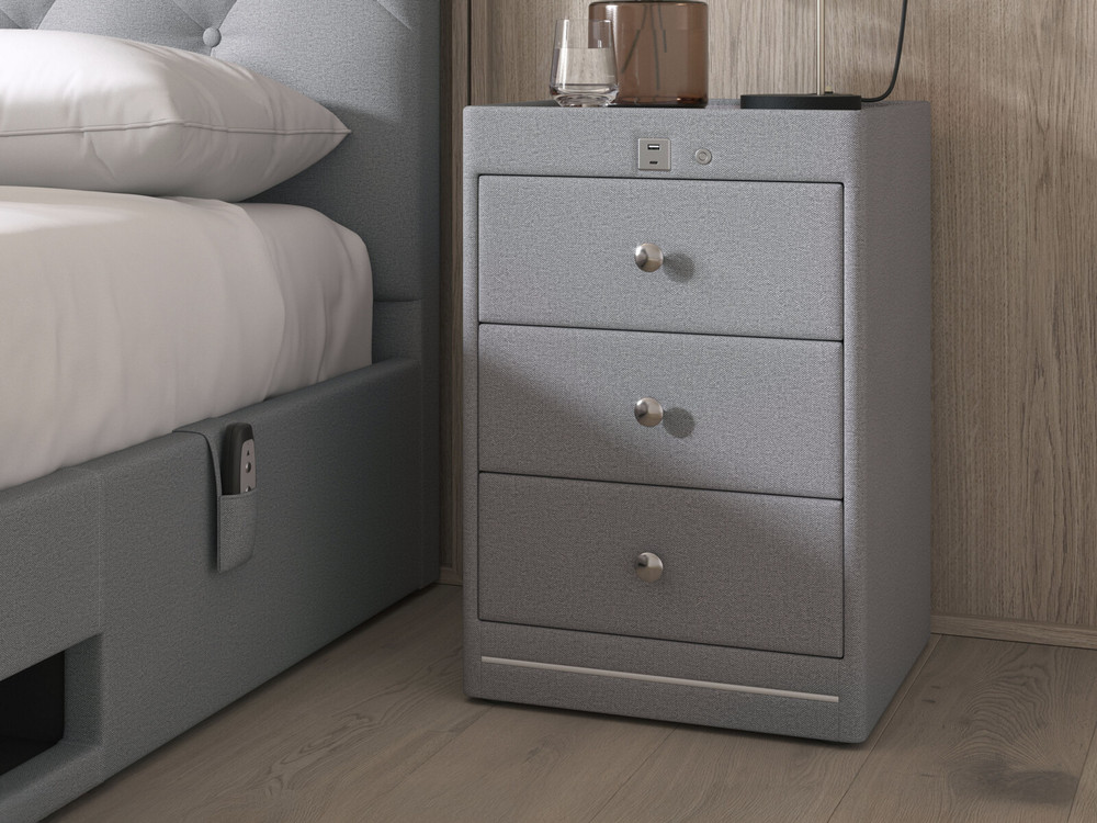 Prepare for a bedroom furniture upgrade. Contemporary and upholstered, the Kuban 3 drawer bedside with USB and USB-C Charging port takes a bedroom furniture staple and brings it into the modern day, thanks to its dual charging port with USB and USB-C charging technology.