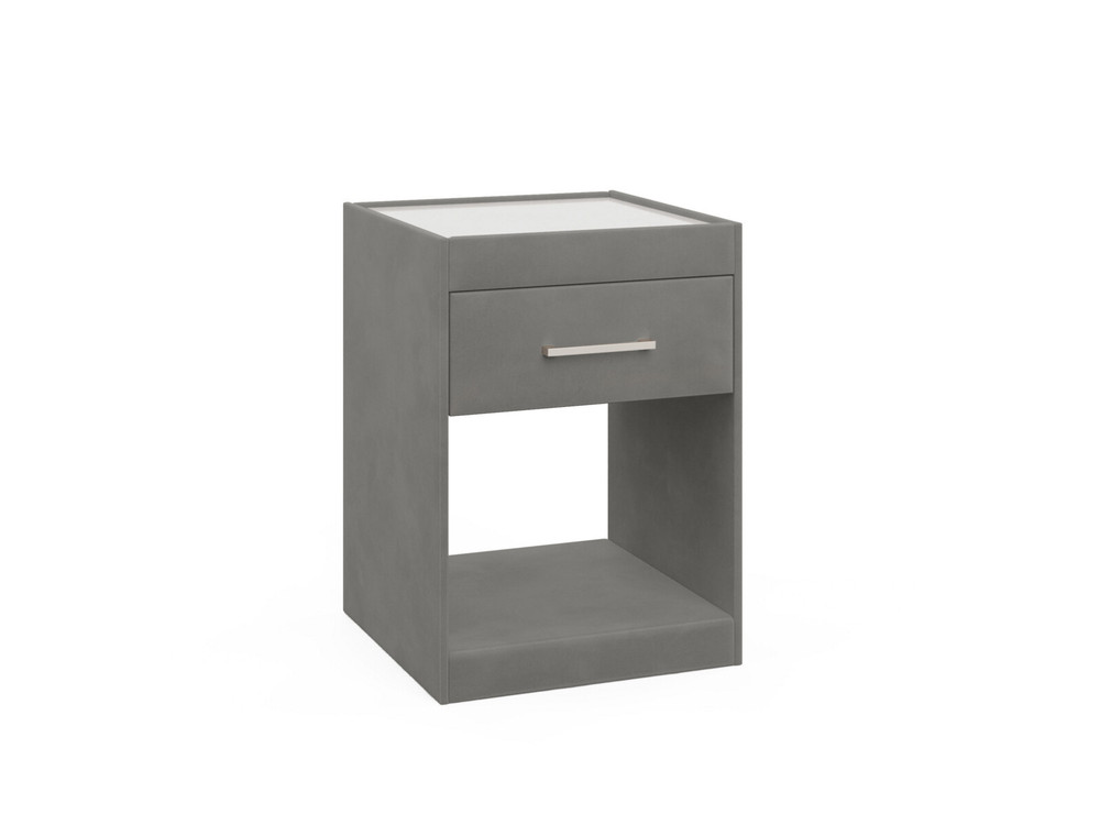 Upholstered in a grey velvet fabric, this bedside table complements any interior. There’s a generous drawer at the top of the table, with an elegant chrome effect handle, and an open storage shelf underneath to make it super easy for you to find your bedroom essentials or display your favourite ornament.
